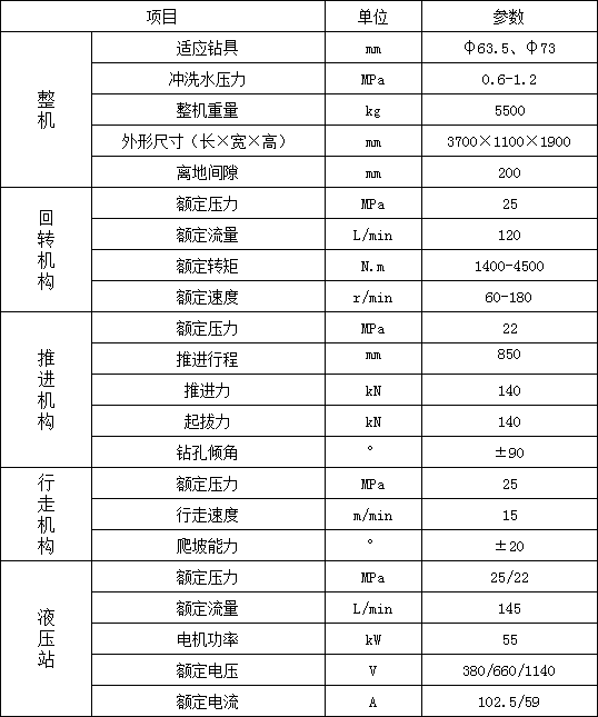 1. 履帶行走,大大提高移鉆、穩(wěn)鉆的效率,顯著減輕工人的體力勞動強度;